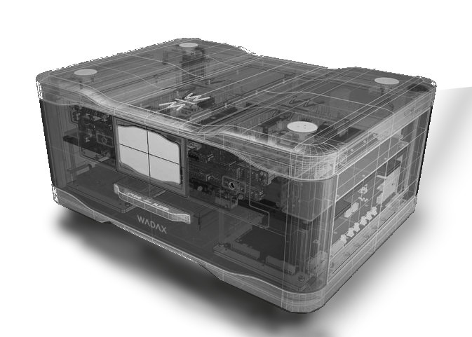 Studio Player je konstrukčně opakem jednoduchosti. Jeho španělští konstruktéři tvrdí, že je uvnitř přes čtyřicet desek plošných spojů a pár tisíc součástek. Jejich značná část je zaměstnána filtrací napájení a izolací jednotlivých obvodů od sebe, neboť jak Wadax správně tvrdí, všechno začíná napájením a potlačením rušení. Takže má Studio Player hned na vstupu pětistupňovou DC regulaci a kaskádu třiceti lokálních regulátorů. Firma se nechce dělit o metodu D/A převodu, nicméně poukazuje na to, že za její jedinečností stojí fázová a časová korekce v reálném čase, kterou nazývá “musIC”. Zjednodušené řečeno, uvnitř pracuje výkonný software, který neustále vyhodnocuje vztahovou funkci mezi vstupem a výstupem, predikuje potřebné korekce a pak je posílá na vstup, aby byl výstup co nejideálnější. Po Taiko je to už druhá značka, která tvrdí, že u digitálu je důležitější software než hardware.