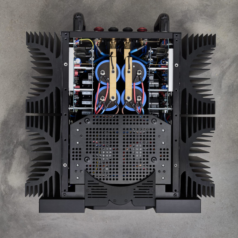 The machine is strictly dual-mono, and it is built around high-current bipolar devices with zero-negative global feedback, with 335,000μF of filtering capacity per channel, and two 1,500VA toroidal transformers. The dual-monoism permeates the powering architecture too – each half of the amplifier has its own power switch and C19 16A inlet, thus two power cables are needed. Symmetry is also required in how phase is connected; in case one of the AC cables has reversed phase, the AC phase indicator stays on. Other than that, there are two pairs of very solid proprietary speaker posts, one pair of XLR inputs, and a grounding post around the back. No RCA inputs.
