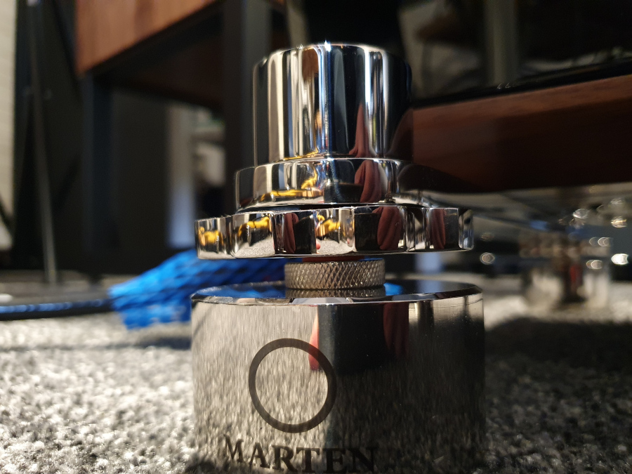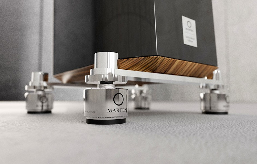 Od podlahy jsou Mingus Quintet 2 izolovány leštěnými nerezovými příčníky s rovněž leštěnými nožkami, jejichž základem jsou IsoAcoustics Gaia, které pro Marten dodavatel přizpůsobuje na míru. Nožky rovněž definují velikost mezery mezi kabinetem a podlahou, protože do podlahy směřuje i velký basreflexový nátrubek. Vše je provedeno pečlivě s velkou pozorností k detailu. Chtěli jste to nejlepší, dostali jste to nejlepší, ne?