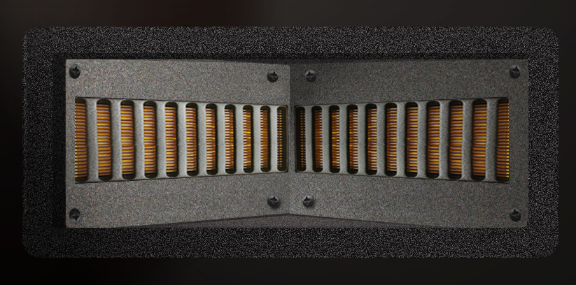 On the tweeters: The outside edges [of the tweeters] were brought forward in increments, allowing the ribbons to crossfire. The center summation was quite solid, as it should be, but an added benefit was the mutual coupling at the lower end of the ribbons’ range, increasing efficiency and decreasing distortion even further. If the ribbons were not splayed as described, they would comb filter at higher frequencies. But because the diaphragm is moving away from the listener as it approaches the center, combing is not a problem. Ironically, the 6″ drivers just below the ribbons intentionally rely on destructive interference off-axis to reduce their level.