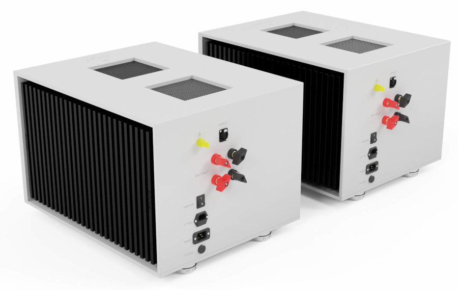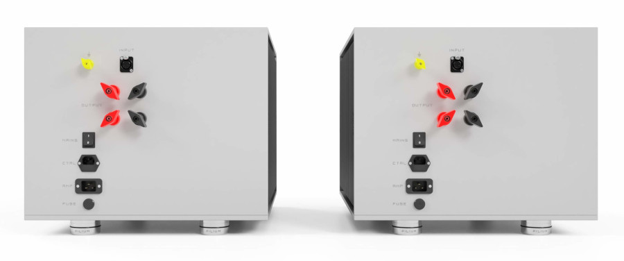 The Pilium Kronos design is very contemporary with its stark lines, immaculate sliver white beaded finish, no visible joints, and overarching simplicity. Of course, if you are a Dan d’Agostino’s style of “a device found in a derelict boiler room” worshipper, the Pilium will not appeal to you. I love how it looks. There is nothing but white rectangle of status LED on the front fascia, and nothing but black cooling fins on the sides, supported by ventilation grilles on the top of the chassis. Around the back there is the mains switch and a fuse, two power cable inlets (C15/10A and C19/16A), a single XLR input (no RCA), two pairs of speaker posts, and a grounding nut. For the money you pay you get a monolith with not much buttons or switches to fiddle with.